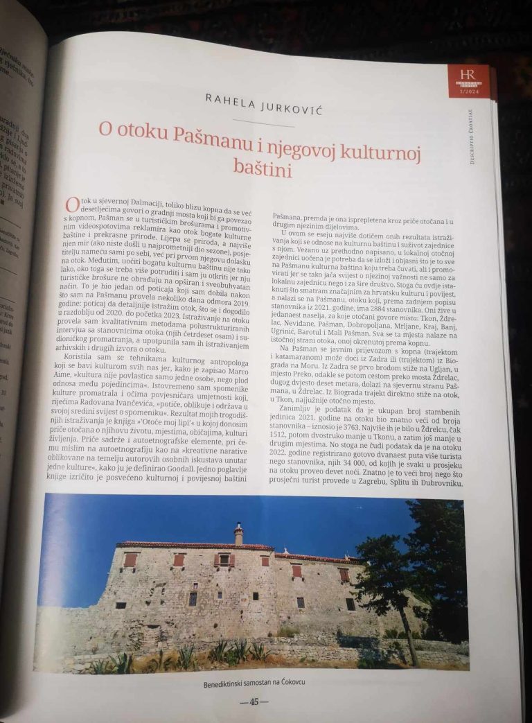 U 1. broju Hrvatske revije Matice hrvatske za 2024. objavljen je esej dr. sc. Rahele Jurković “O otoku Pašmanu i njegovoj kulturnoj baštini”.